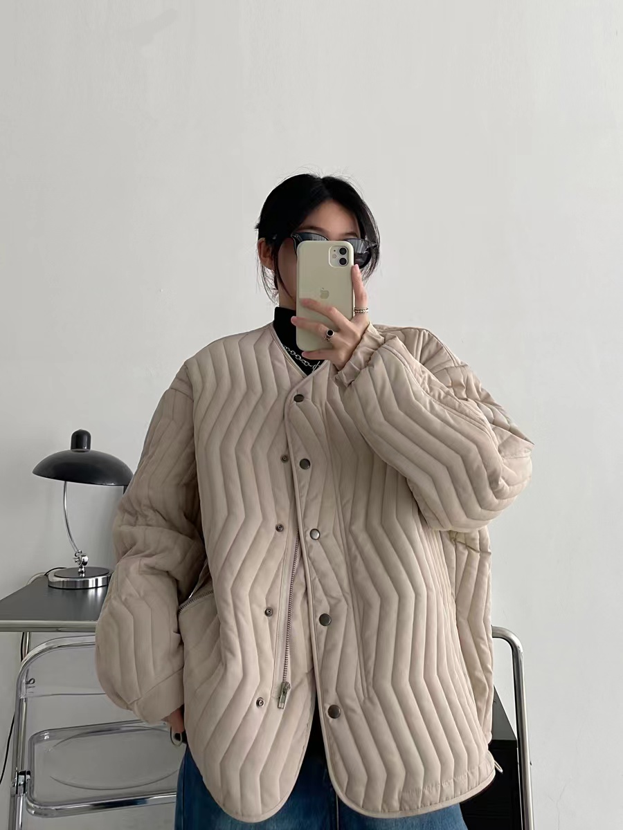 個性的なうねり模様のキルティングが特徴のレディースダウンジャケットベージュは、周りと差がつくおしゃれなデザインです。