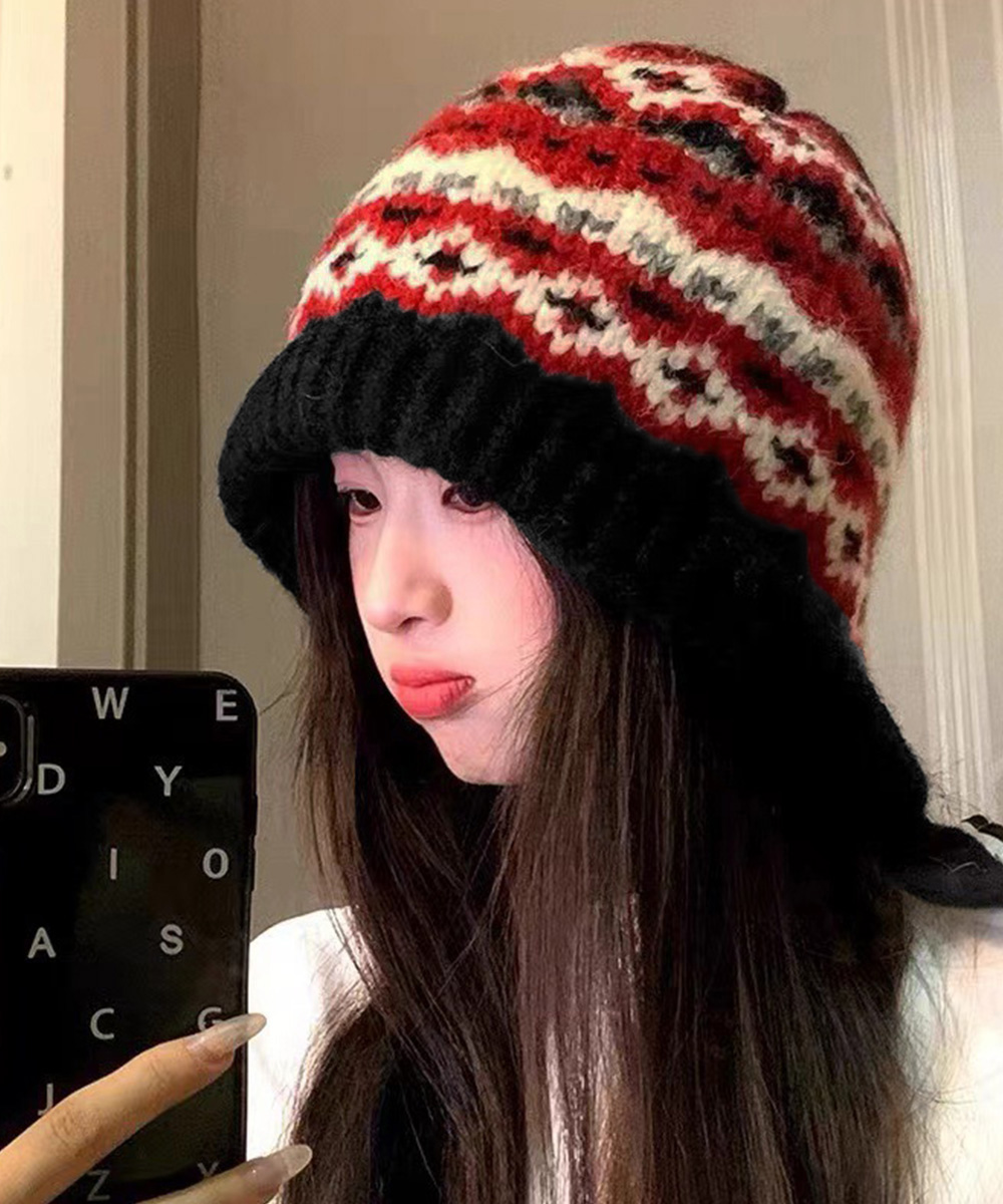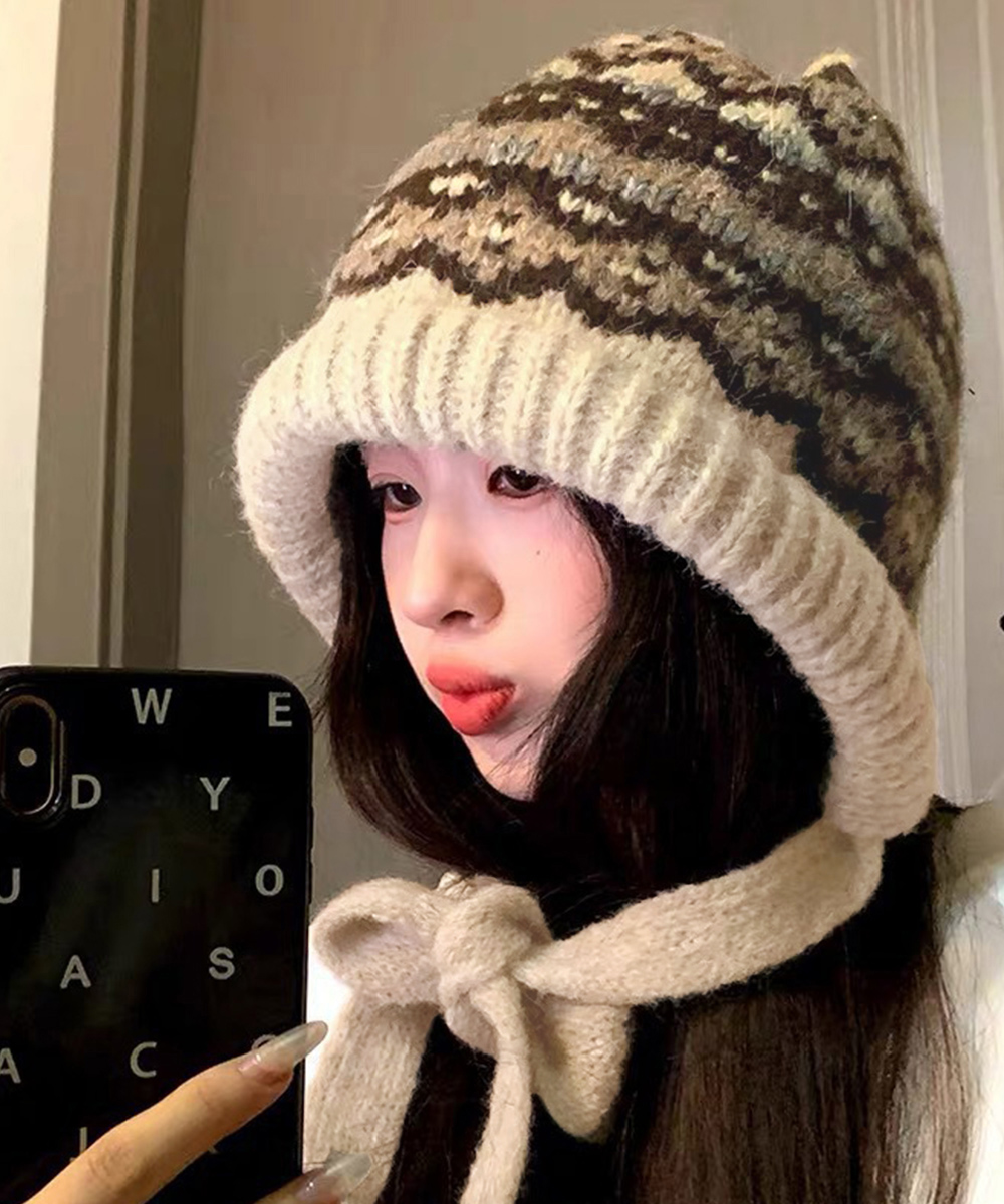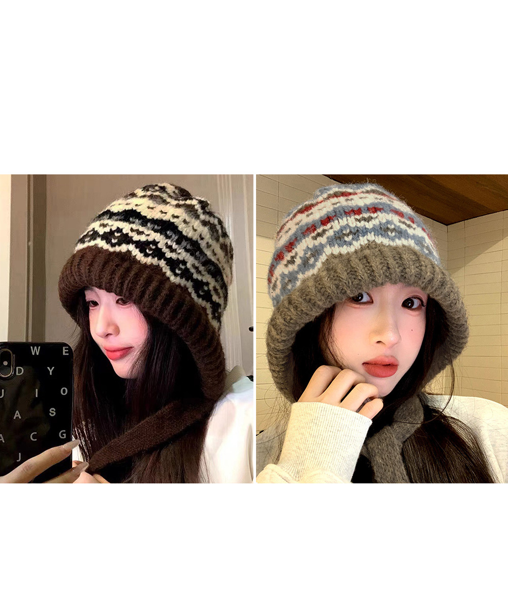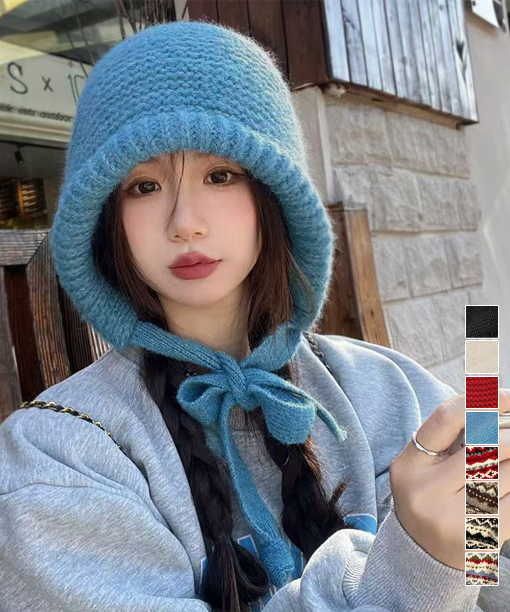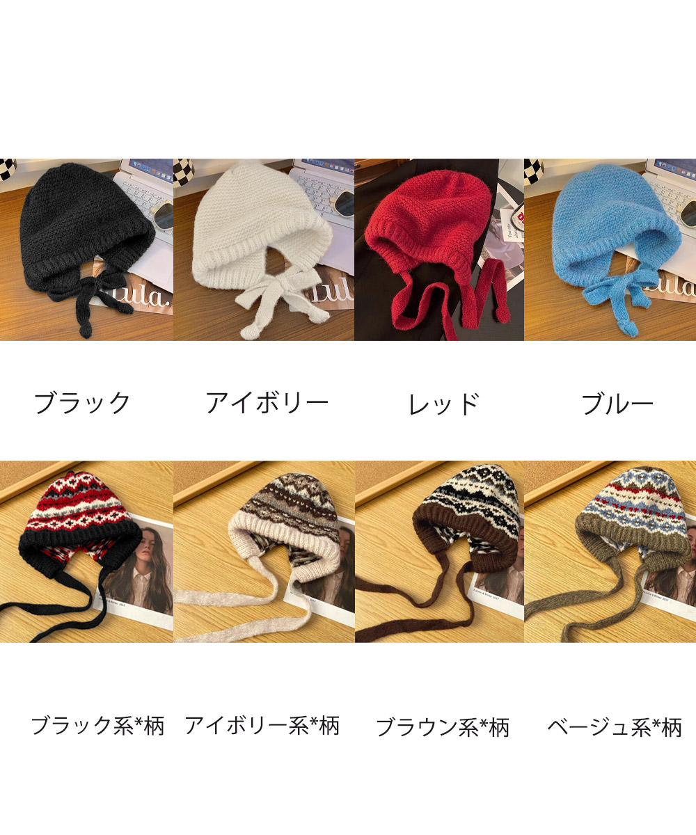 耳までしっかり覆える、耳当て付きニット帽子が新作登場。 結び紐付きでフィット感を調整しやすく、強風で飛ばされる心配もなし。 ベージュコーデにも合わせやすい豊富なカラー展開で、無地から北欧風幾何学模様まで揃う小物。 通勤通学や外出時の寒さ対策に最適で、手編み風の温かみのある質感が魅力的。