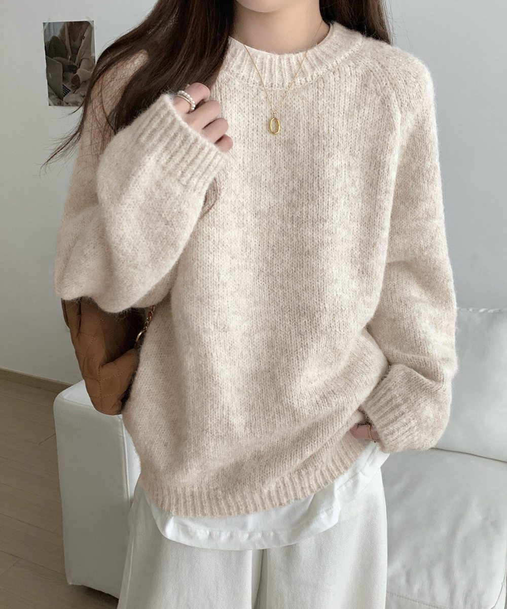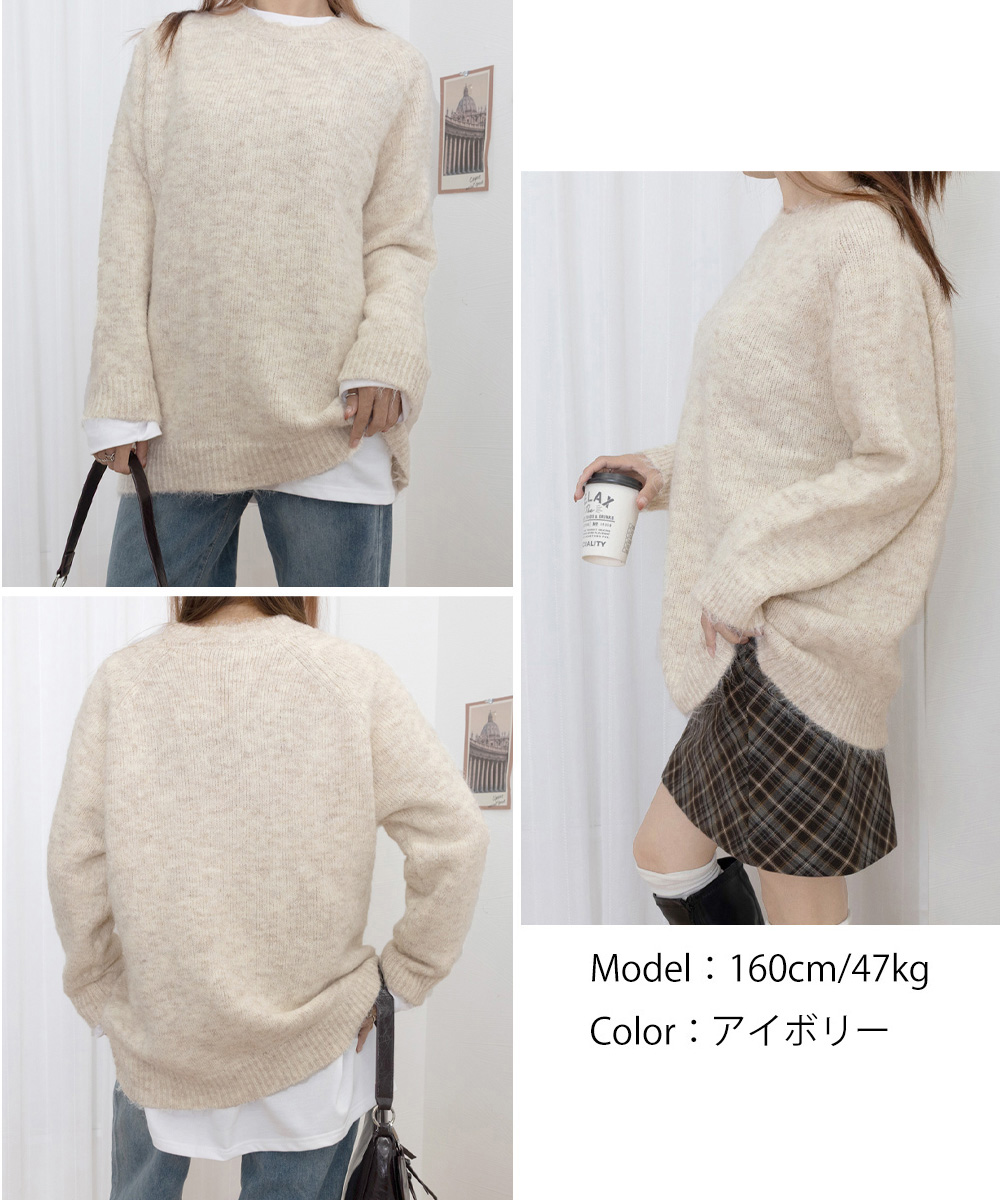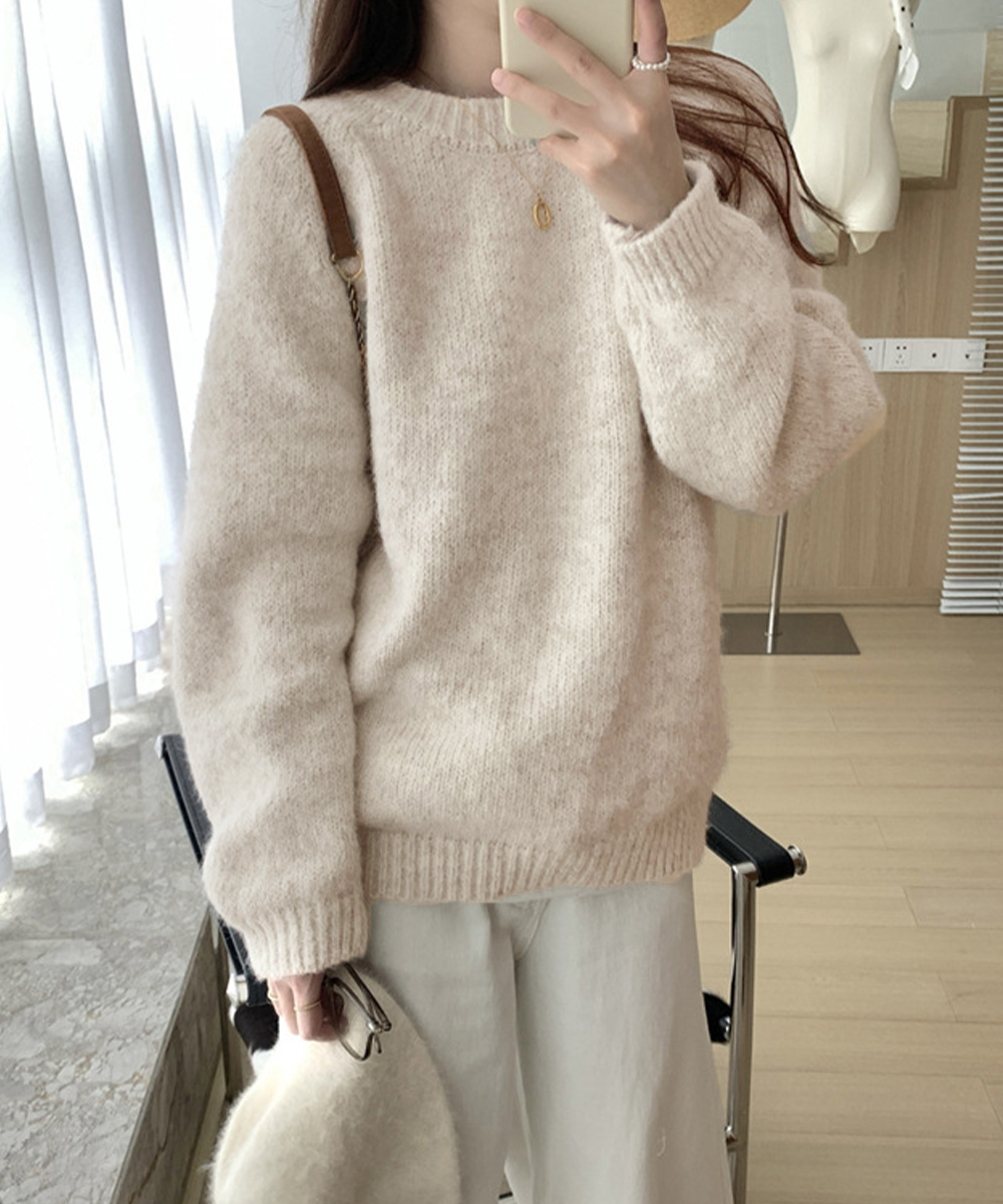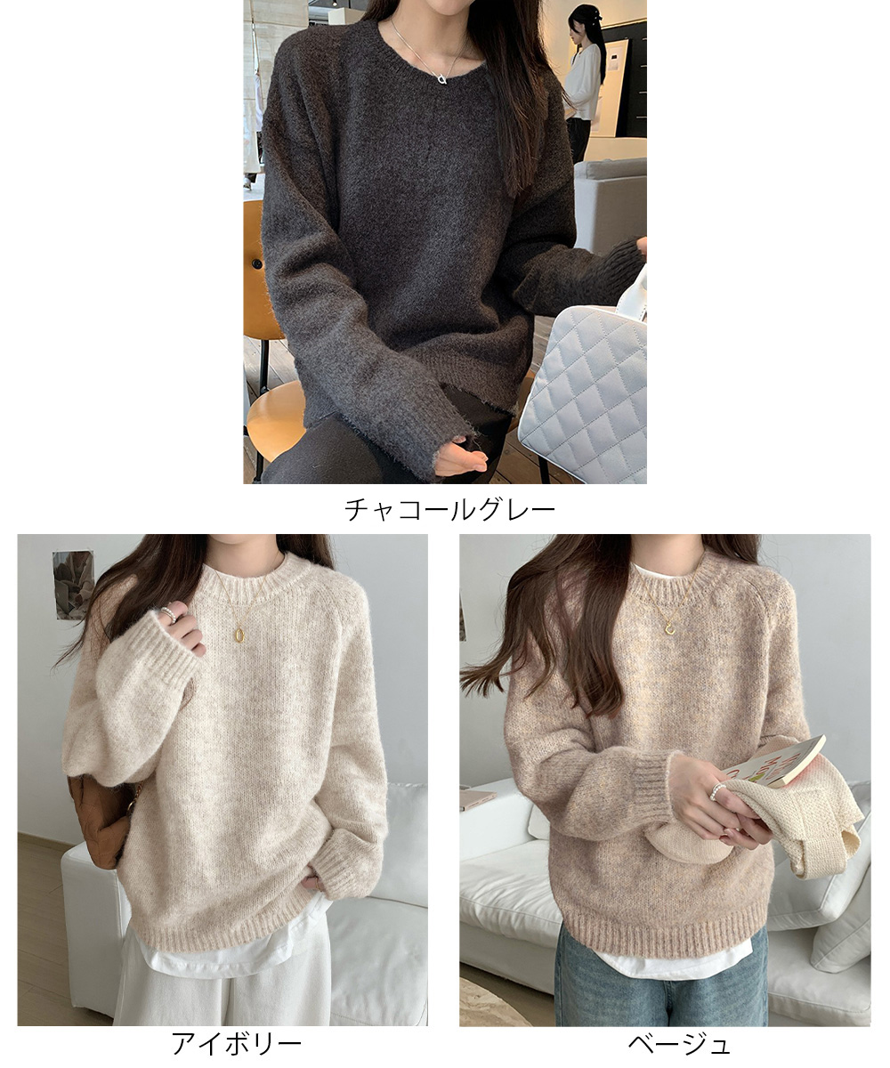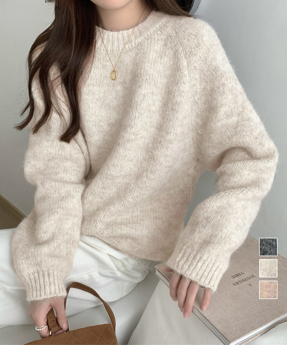 チクチクしない肌触りの良いニットトップスで、もちっとした風合いが魅力的。