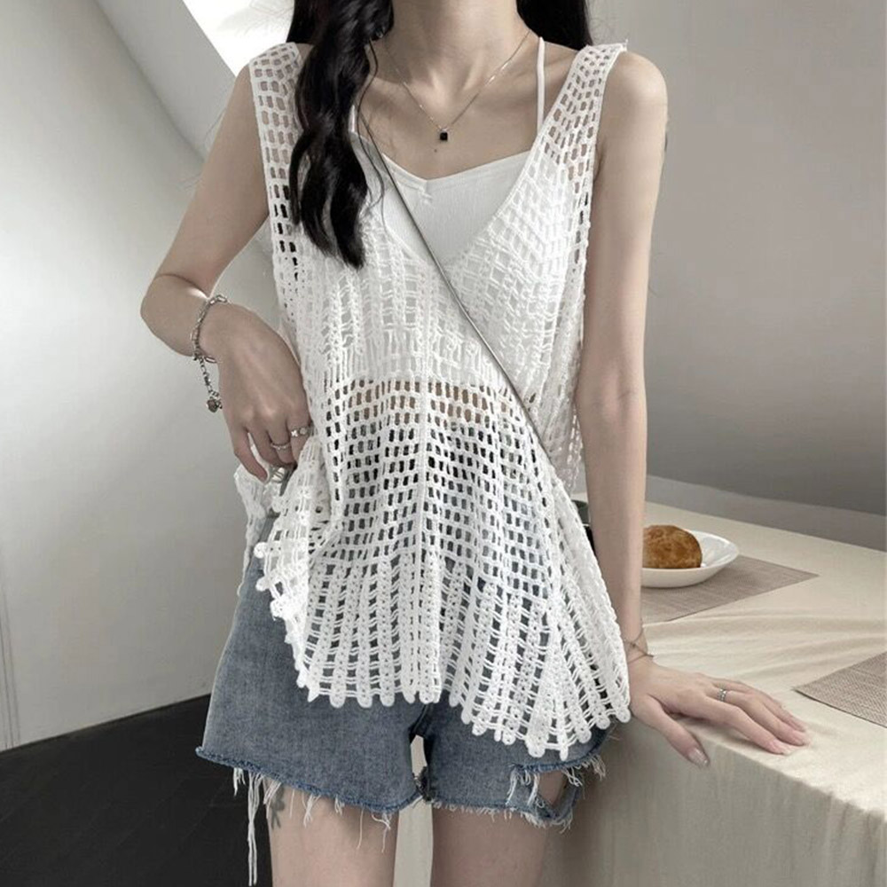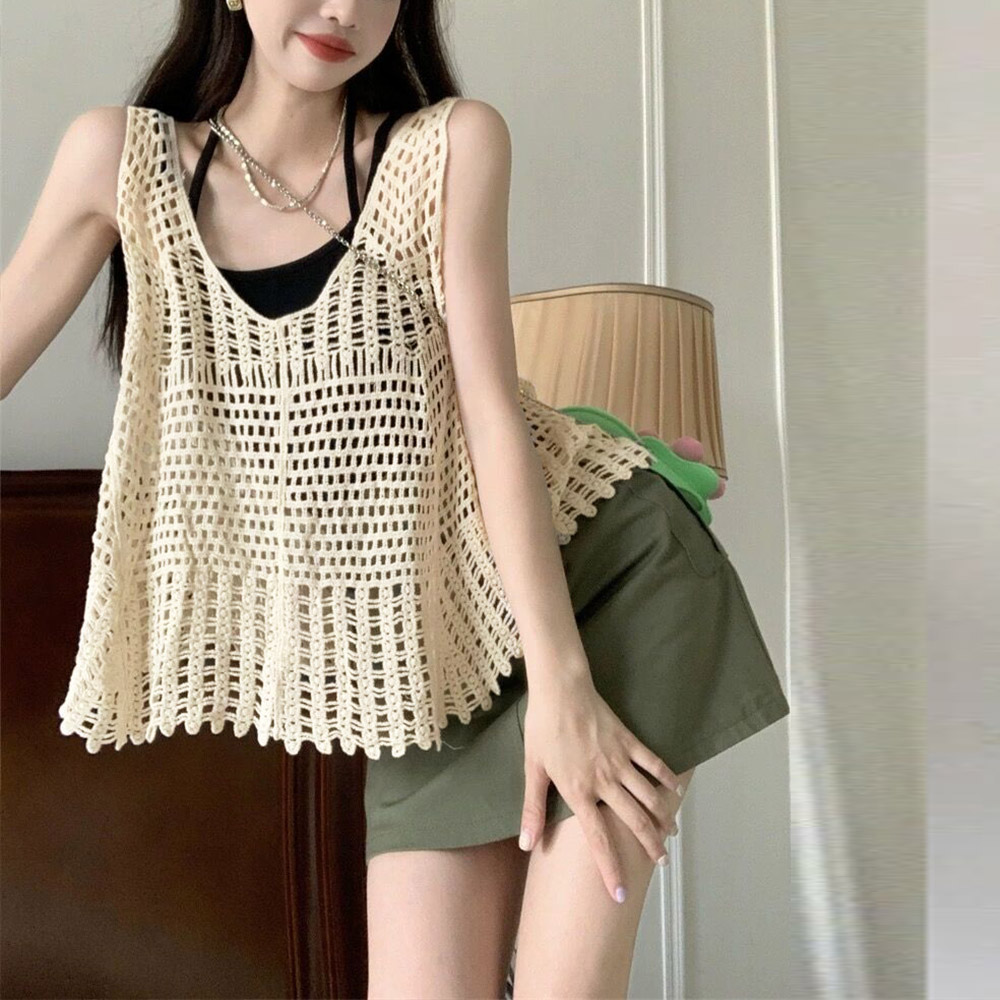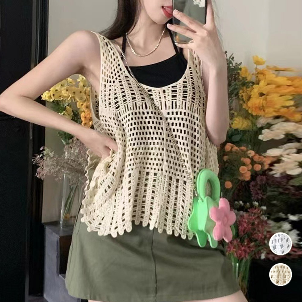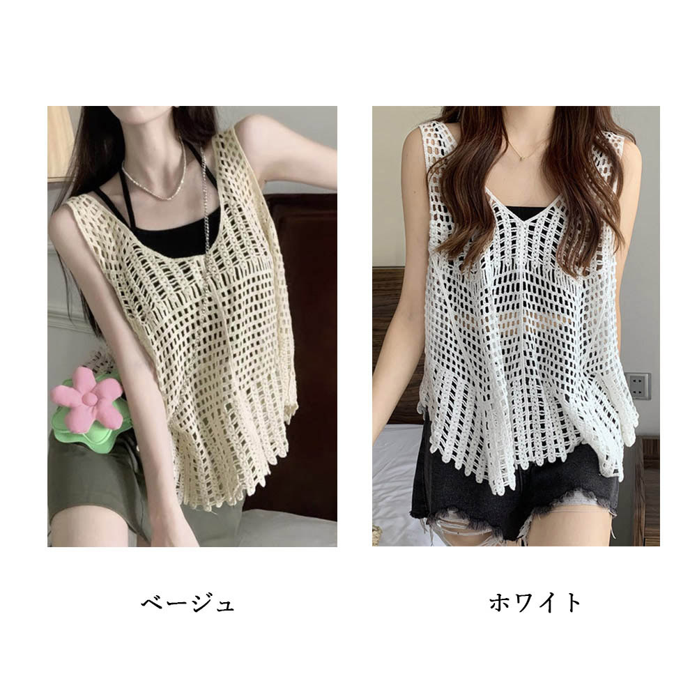涼しげな透かし編みが魅力的な夏にぴったりのニットトップスが登場。
