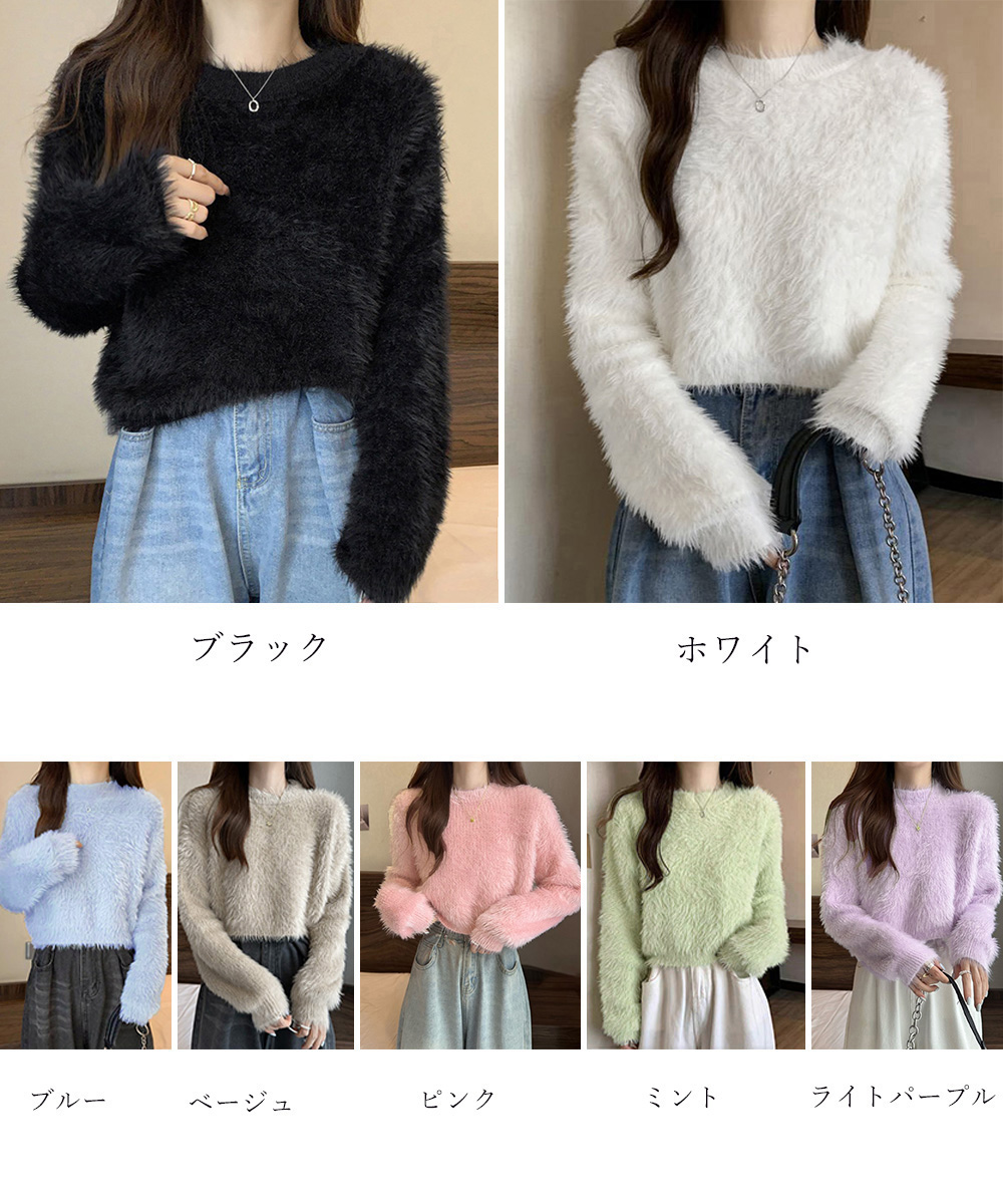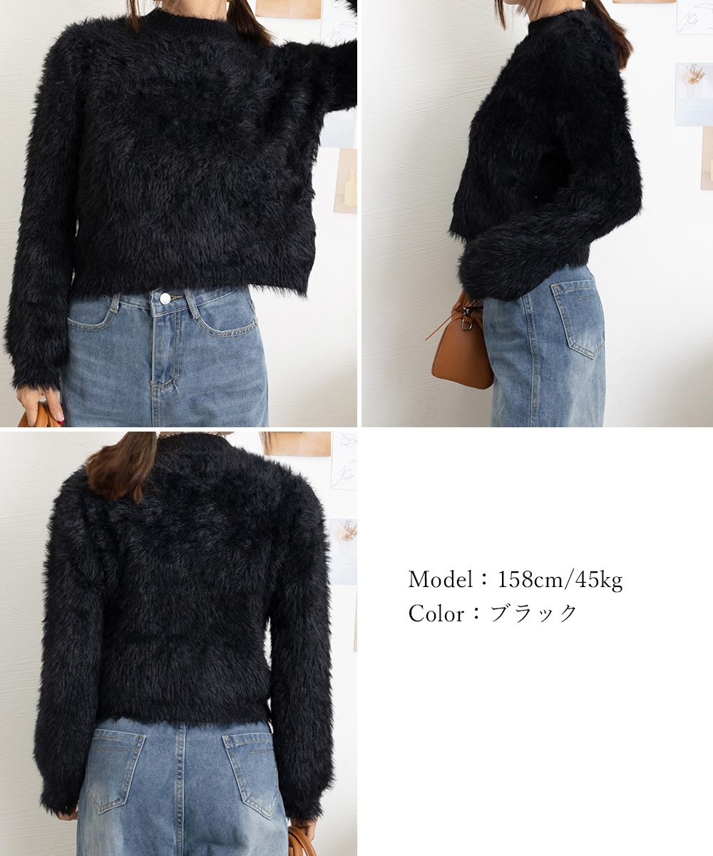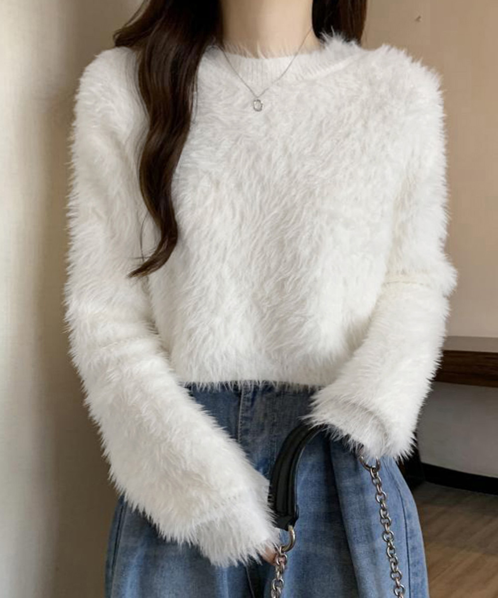 季節感漂うシャギーのふわふわ感が愛らしいニットトップス。