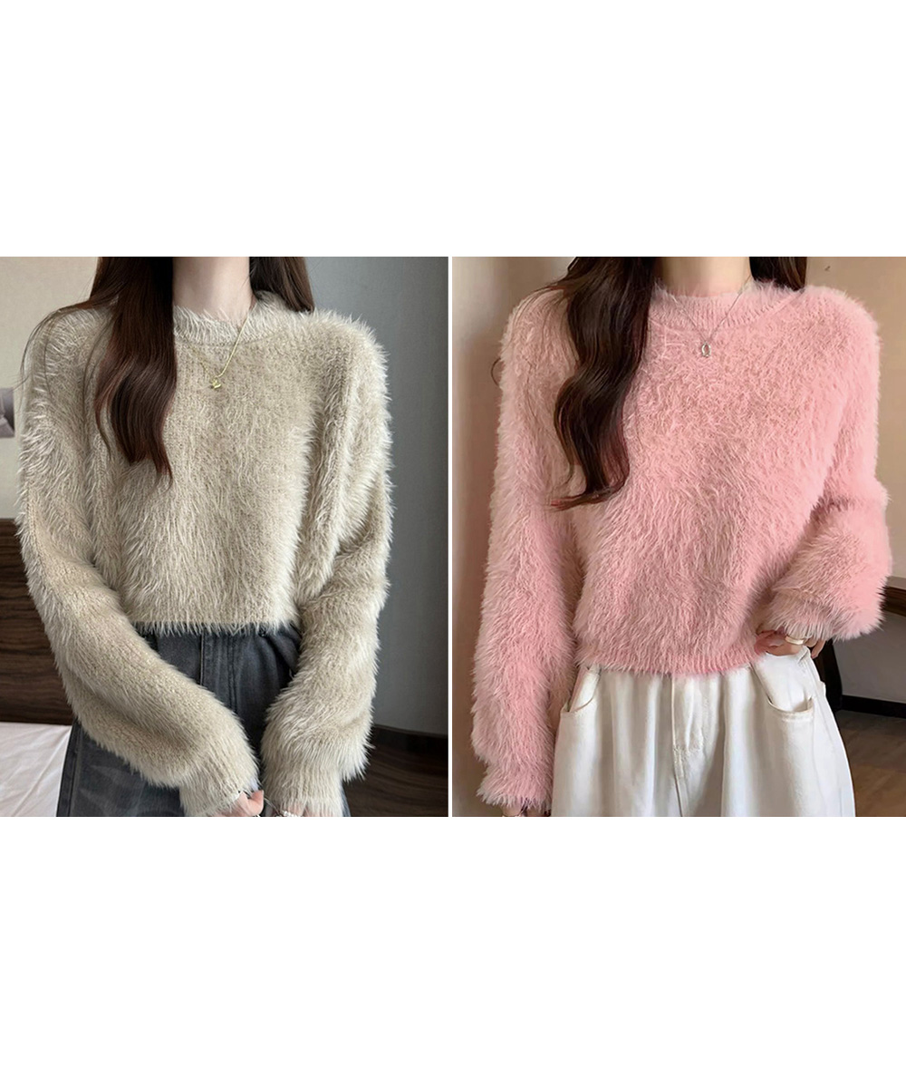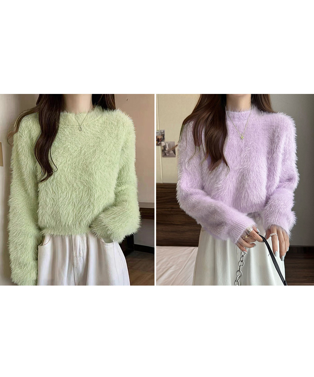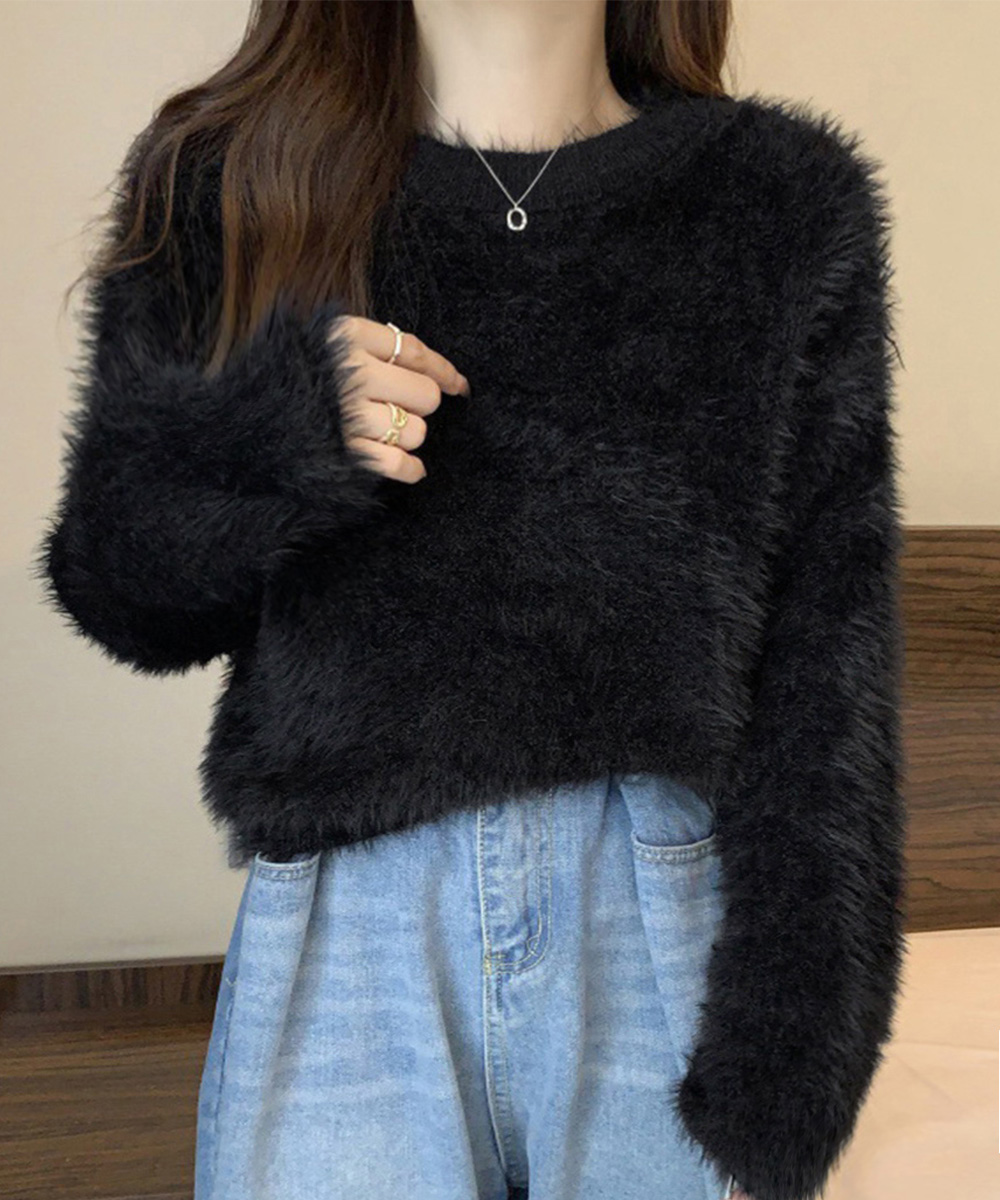 季節感漂うシャギーのふわふわ感が愛らしいニットトップス。