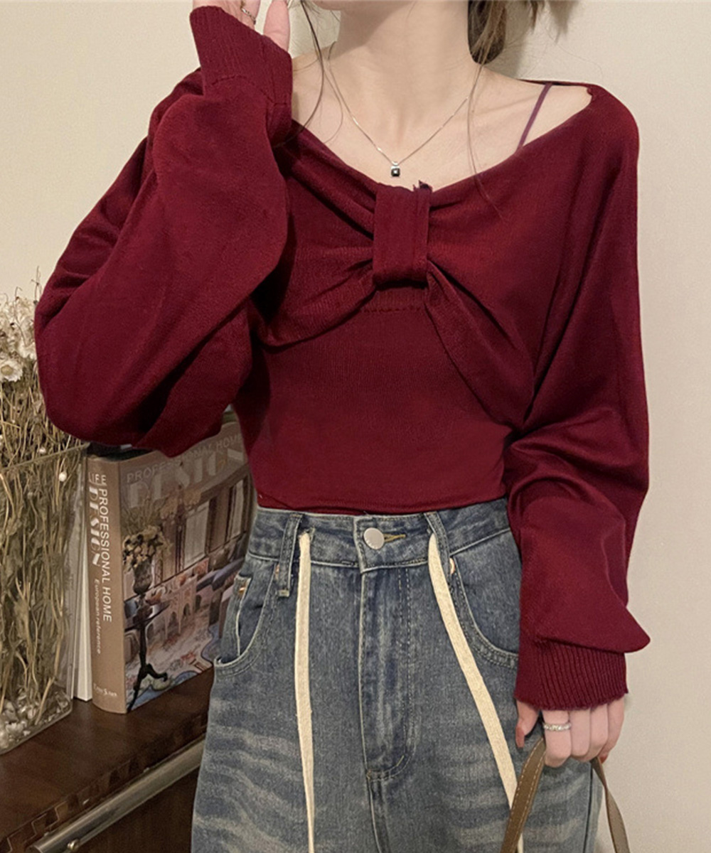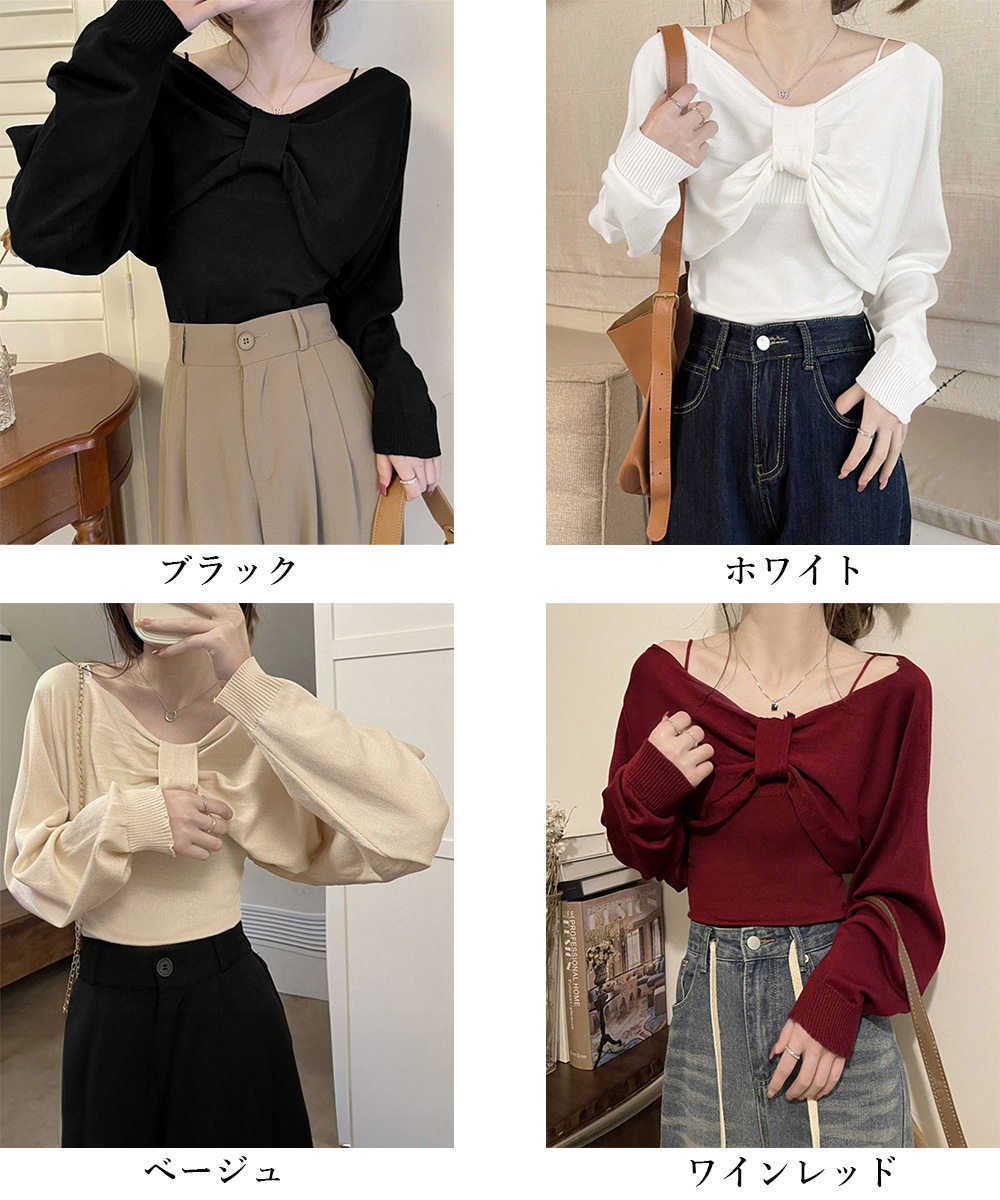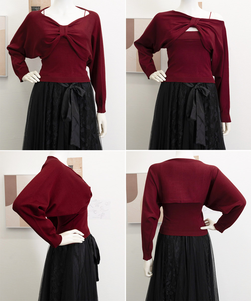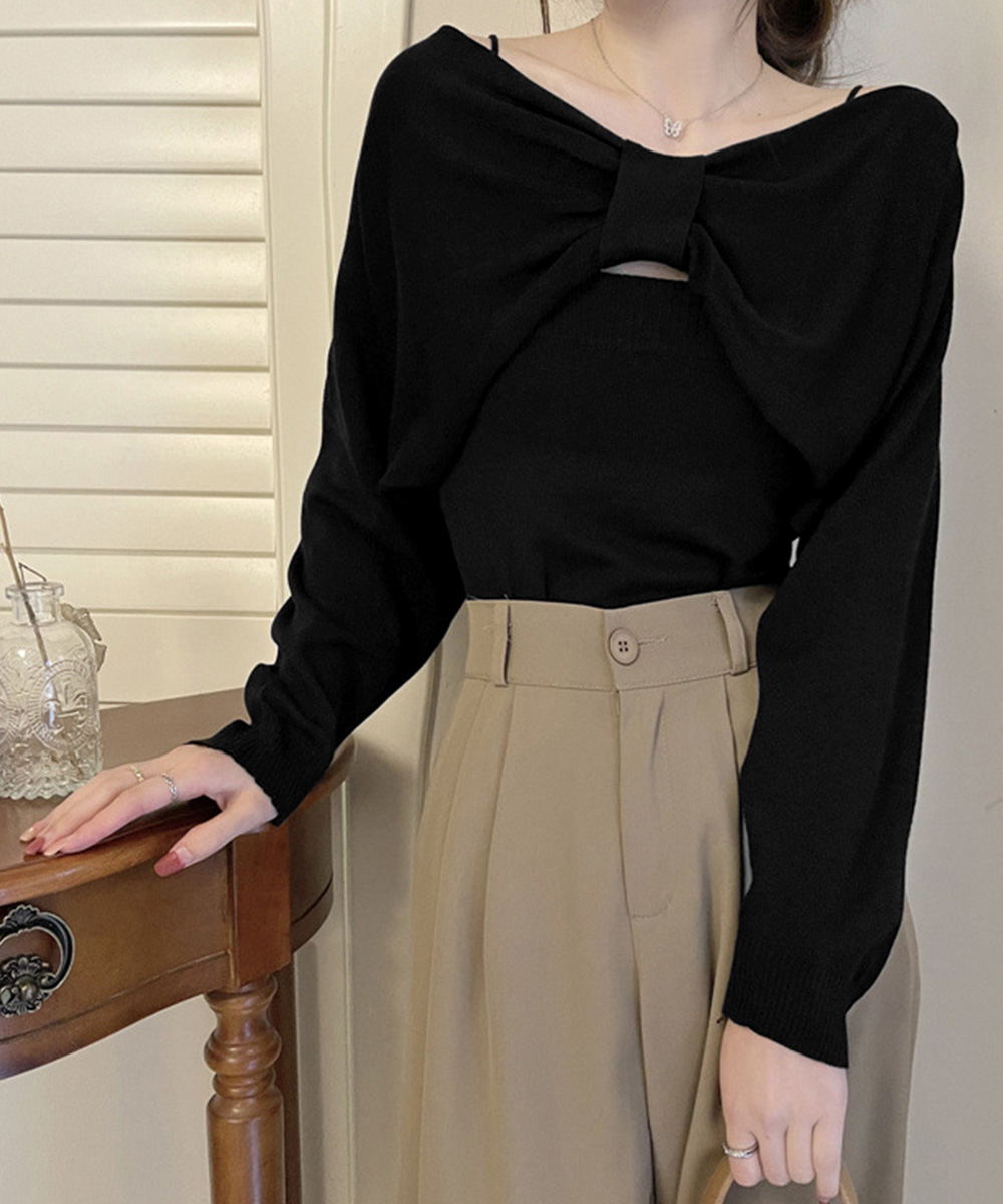 胸元の立体的なリボンが印象的なニットトップスとキャミソールの二点組です。