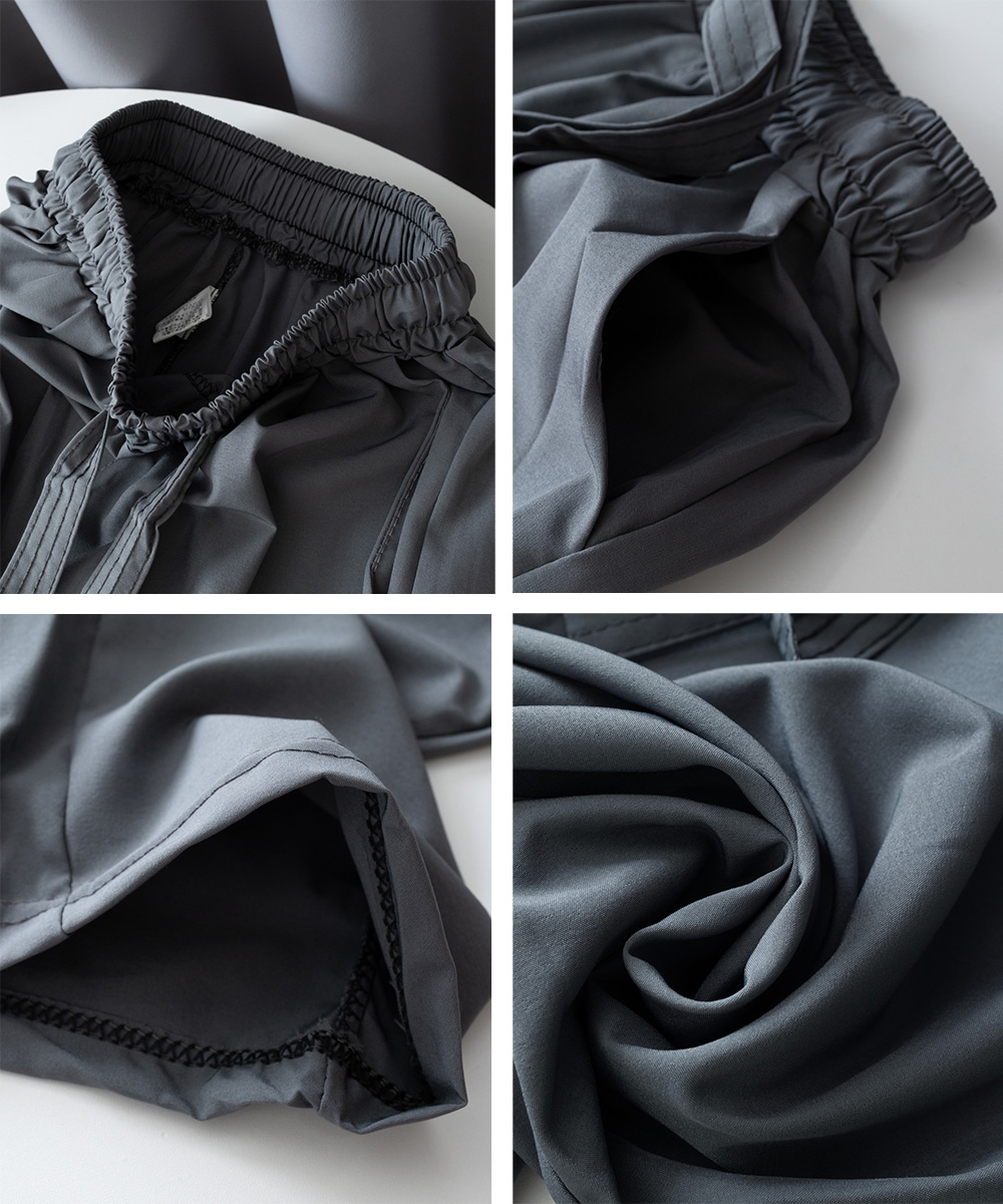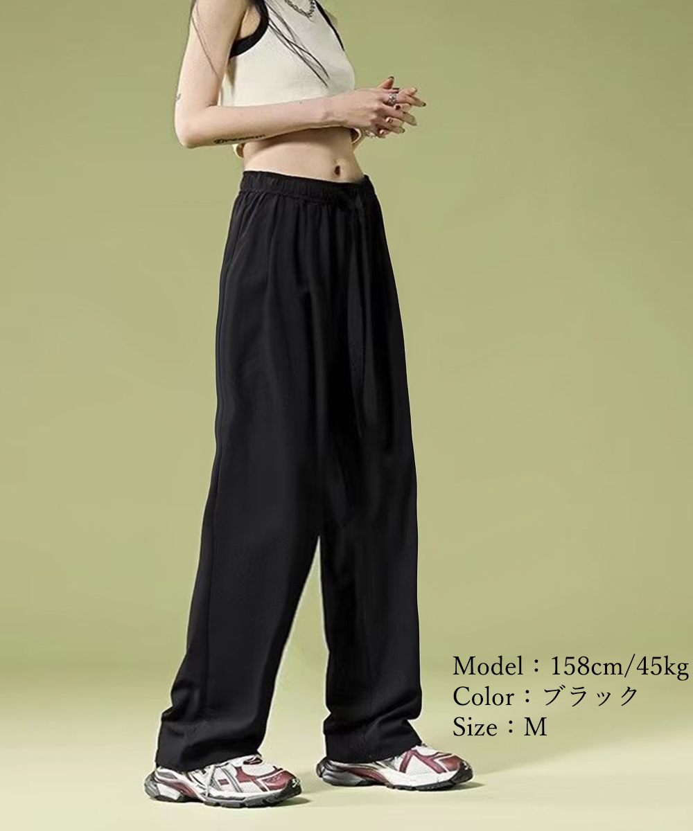 素材:ポリエステル100% カラー:ブラック/ダークベージュ/ライトグレー/ダークグレー/カーキ サイズ:M/L [M]着丈:約101cm 股下:約73cm ウエスト(ゴム仕様):約54-92cm ヒップ:約114cm もも周り:約64cm [L]着丈:約104cm 股下:約75cm ウエスト(ゴム仕様):約56-94cm ヒップ:約116cm もも周り:約66cm 裏地:なし 伸縮性:なし 透け感:なし ※すべて平置きサイズです(採寸方法違いより、多少の誤差がございますので、ご了承ください)。