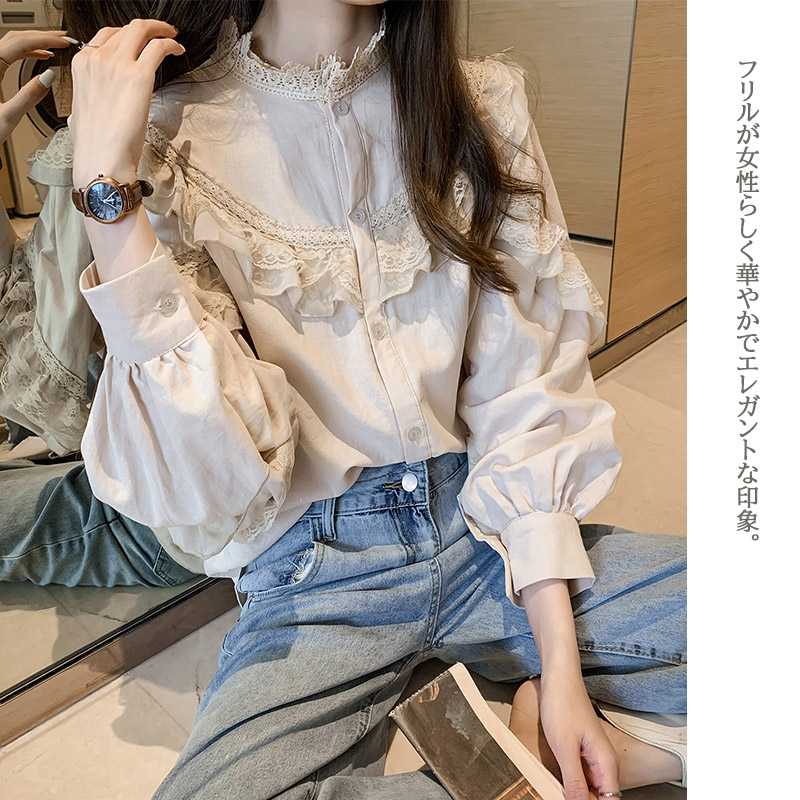 胸元と袖のフリルが可愛らしいトップスです。